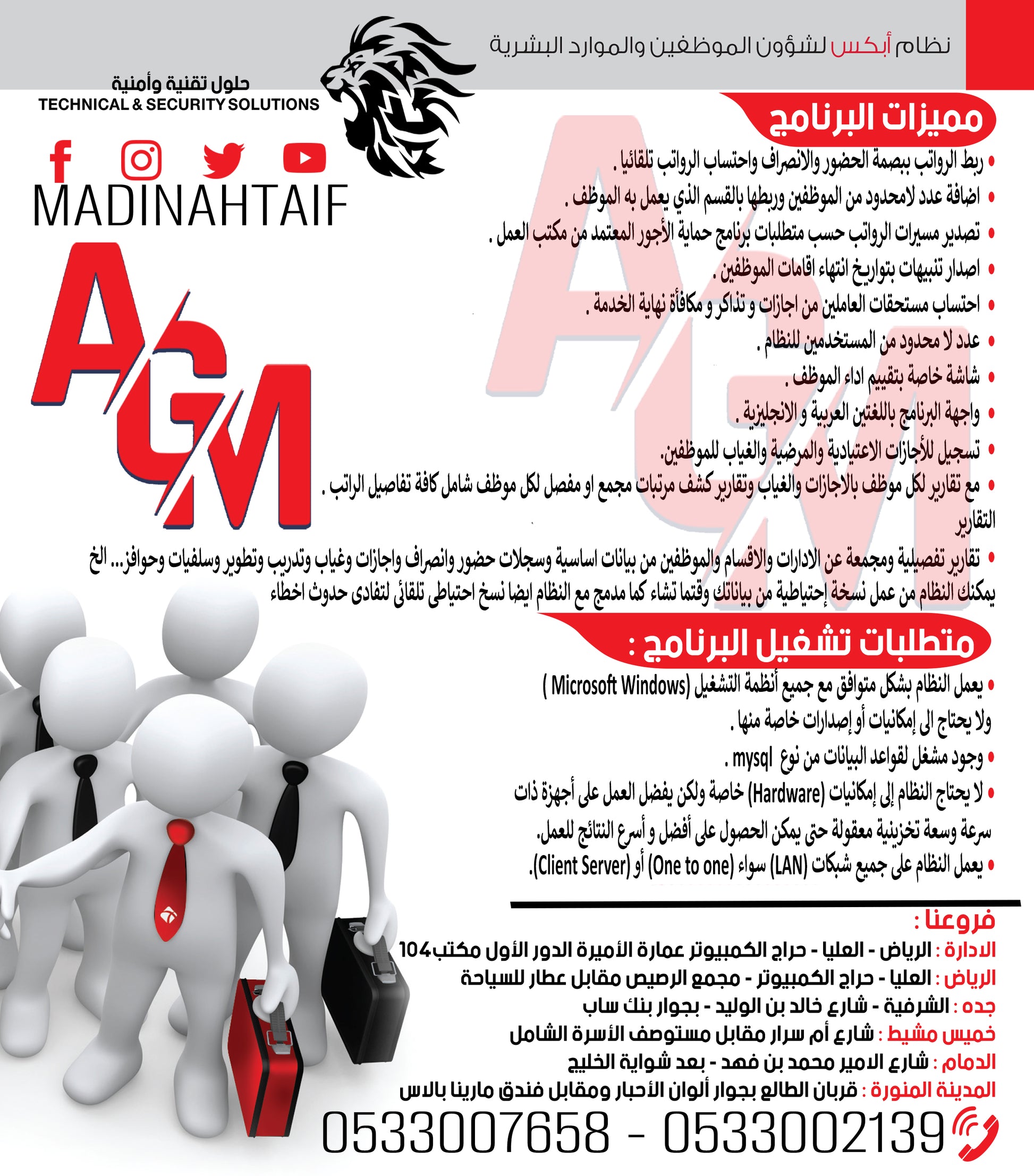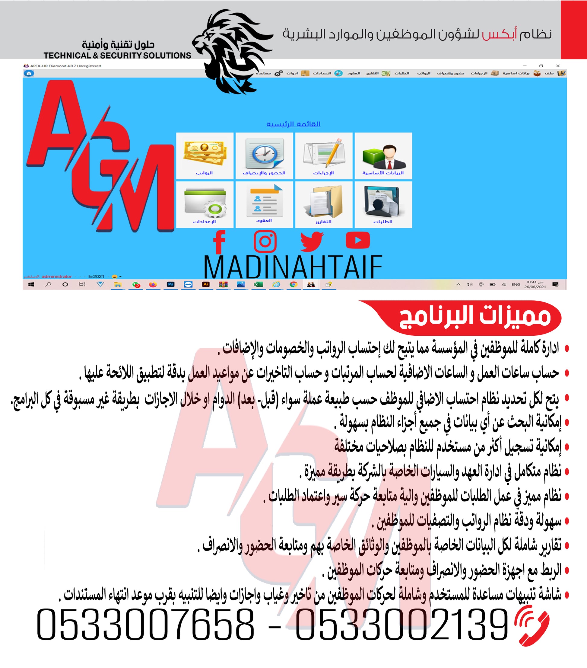 • تحتوي علي نظام ادارة للموظفين و انشاء رواتب • تحتوي علي تقارير شاملة لمتابعة الموظفين • تحتوي علي نظام متكامل لادارة العهد • نظام مميز في ادارة استقطاعات وسلف الموظفين |